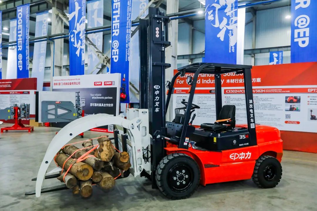 中力木业专用车重心低,车辆稳定可靠,可越野,充分满足室内外作业。同时针对木业可加装特殊属具,圆抱夹灵活抓紧原木,快速搬运;成品区,板材重且容易滑动,中力加宽门架,牢牢托举,并且特殊优化起升、行走,做到平稳起步和精细操作。
