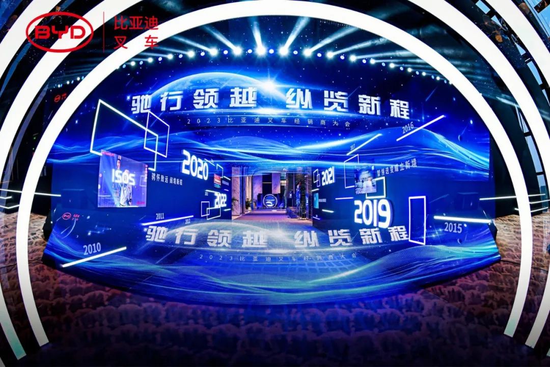 1月18日,以“驰行领越,纵览新程”为主题的2023年比亚迪叉车经销商大会在山东青岛召开。比亚迪第十八事业部总经理毕国忠先生携事业部高层领导,以及全国各地的优秀经销商代表、行业协会、媒体朋友们欢聚一堂,共同展望叉车发展的新未来。