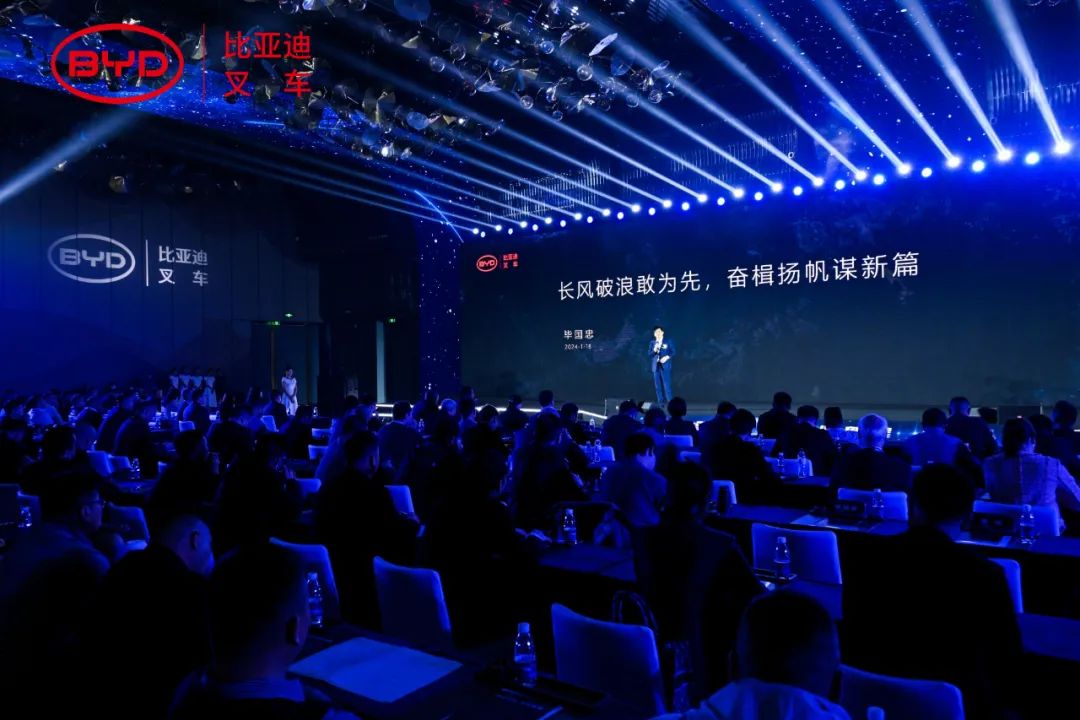 最后张秘书长预祝本届经销商大会圆满成功,并希望比亚迪叉车能够继续发挥技术优势,加强科技创新,引领新能源叉车行业向更高的台阶迈进。