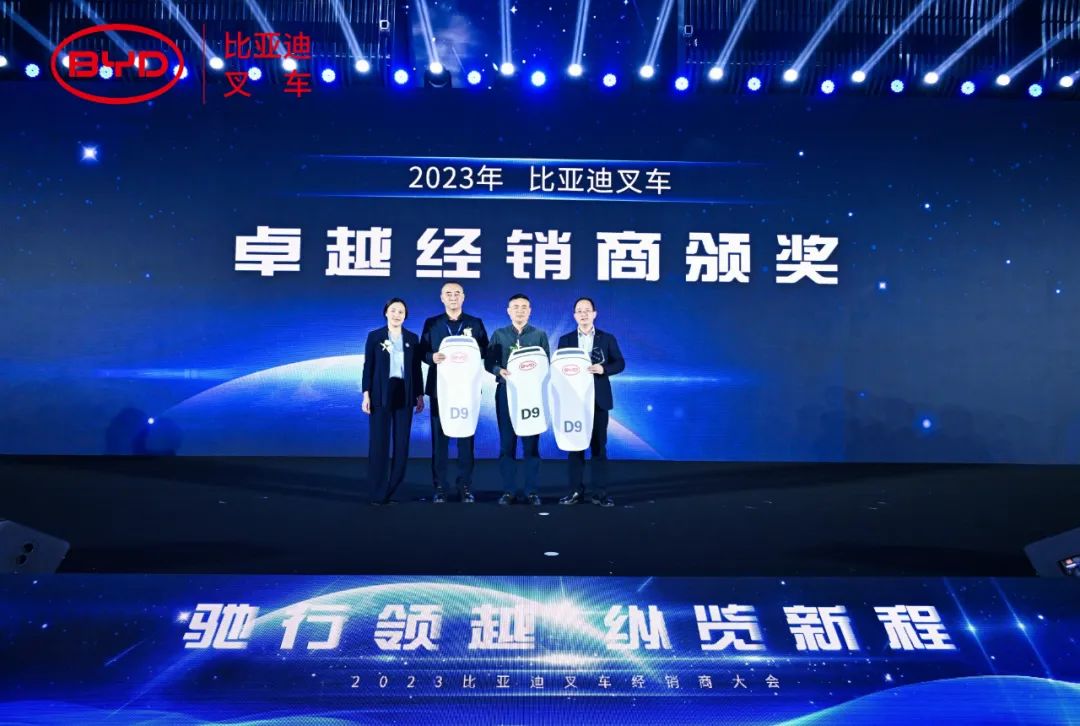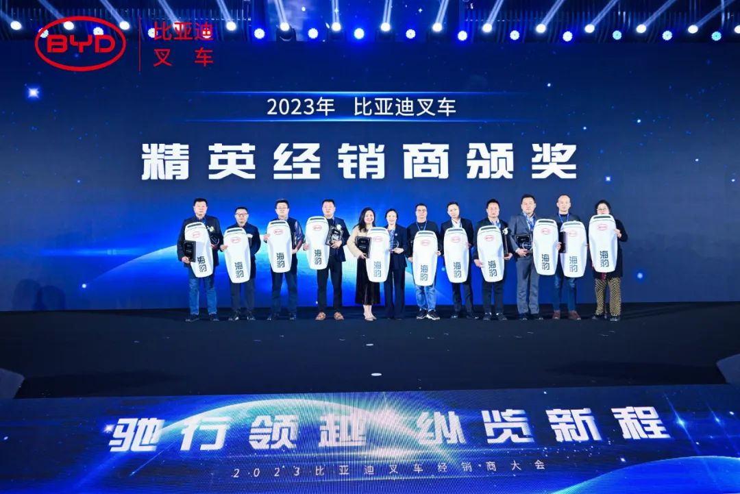 大会同时颁发了非凡经销商奖、卓越经销商奖、精英经销商奖、以及杰出经销商奖,并对在2023年销售业绩表现突出的优秀经销商进行了奖励,以感谢他们对比亚迪叉车发展做出的贡献。