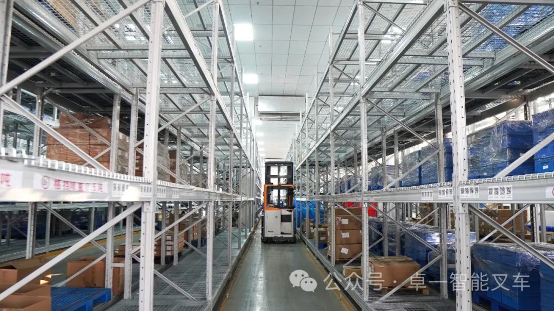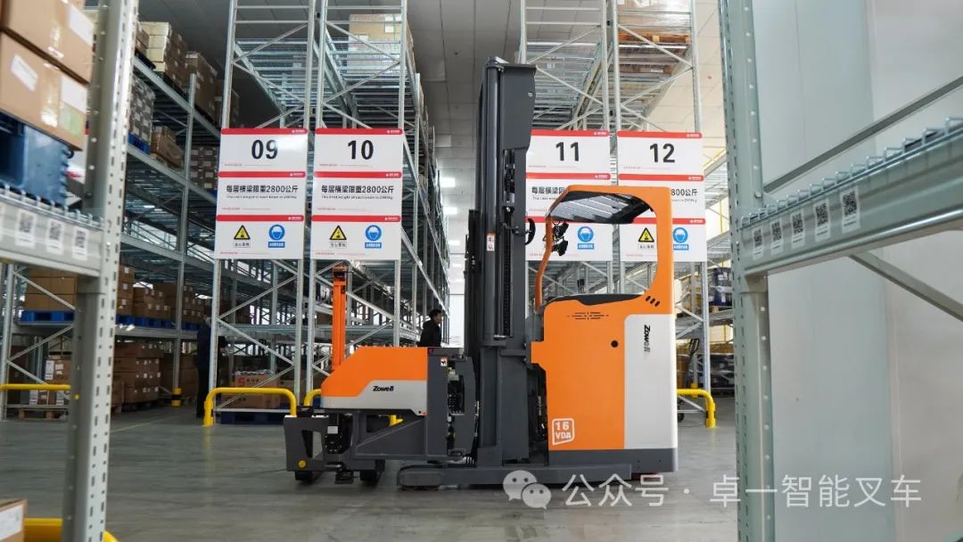 近日,卓一探访了一位老客户,卓一的四台VNA人下行三向叉车已在该企业应用两年有余。