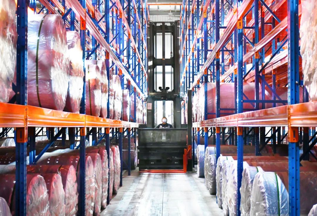 随着产业基地的扩大,对于货物仓储需求日益增大。MiMA窄巷道三向堆垛车,拥有密集堆垛和高效运力使得仓储扩容增效,在纺织行业得到了广泛应用。