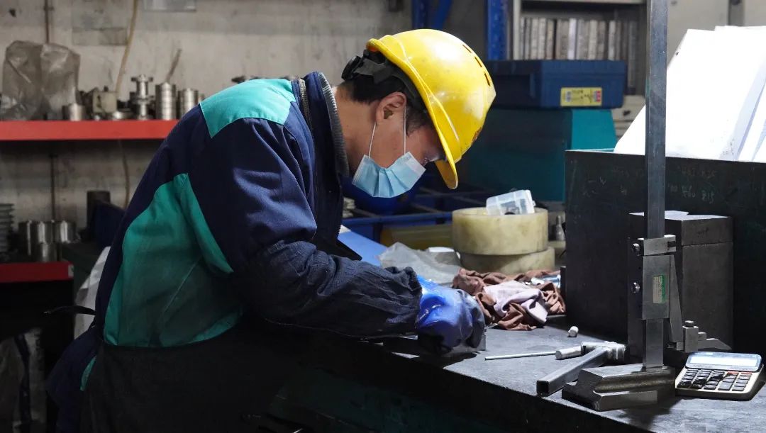 金加工项目比赛现场如火如荼,选手们眼准、手稳、心静,根据图纸要求,使用设备完成一系列切削、磨削等操作,他们紧盯着测量仪器,加工的零部件的精度和光洁度令人赞叹。