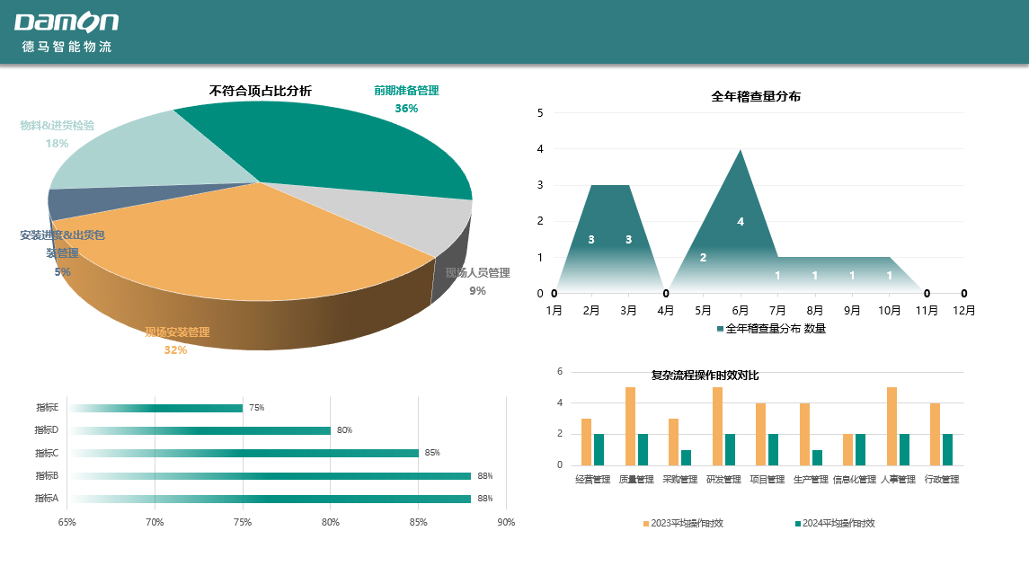 德马通过定制化的项目质量控制计划,将项目质量的控制要素予以闭环管理,并对项目的质量数据以固定周期进行归集、拆解和分析,定期告知相关部门需要重点关注的质量改善项,帮助更好地规避和持续改善项目全过程中可能发生的质量问题。
