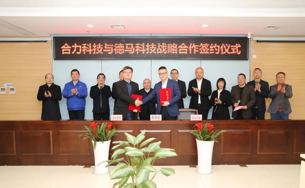 在各位领导的见证下,合力科技与德马科技共同上台签约。安徽合力是世界工业车辆行业十强之一,连续多年保持国内同行业领军地位;合力科技是安徽合力智能物流业务板块的核心平台企业,业务涵盖智能物流系统、AGV车体、智能网联(FICS车队管理系统)等。