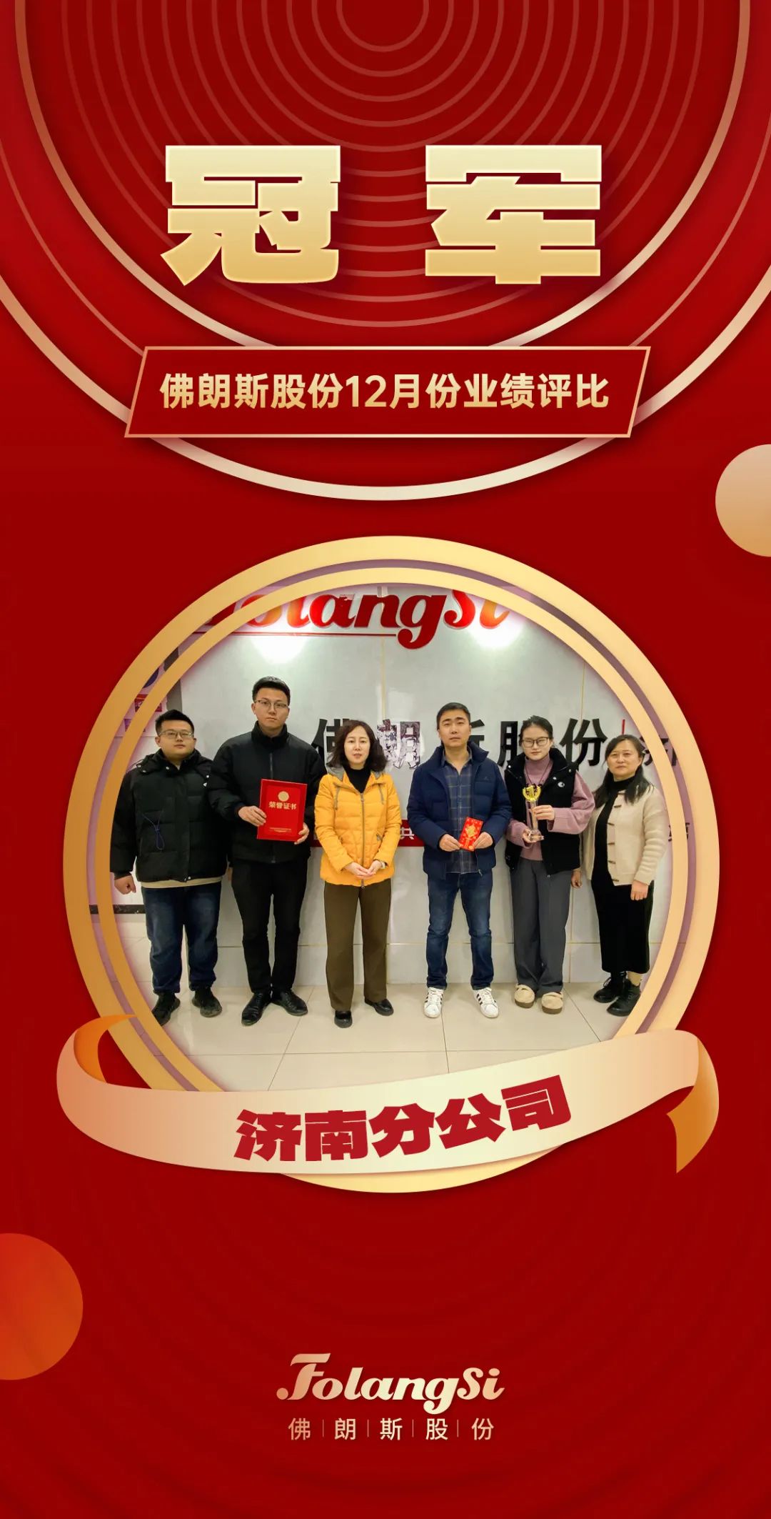 在2023年12月的业绩评比中,济南分公司凭借卓越的成绩,荣获12月评比冠军!