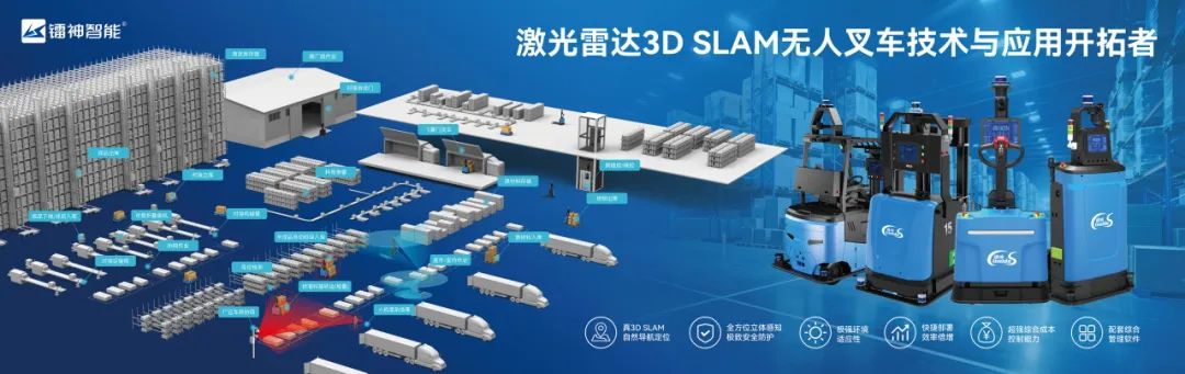 镭神智能成为行业内3D SLAM无人叉车技术应用最早、技术最先进、技术最成熟、作业最安全、落地应用项目最多的公司。2019年率先打造出全球第一款3D SLAM无人叉车,完美解决了传统无人叉车反光板、二维码、2D SLAM方案的场外不能使用、场景应用局限大,成本投入高以及部署繁杂、易烂尾等三大痛点,打破了原来无人叉车需要辅助导航定位的壁垒,搭载7颗高精度激光雷达,应用汽车自动驾驶的算法与运动控制技术,完全实现了自主导航定位、高精度栈板识别、360°3D安全防护等优异性能,满足不同行业的多种搬运需求,适用于各种室内室外场景。目前已累计服务超过150+行业客户,覆盖新能源、汽车电子、物流、皮革、食品、纺织等领域,积累了无人叉车多个行业部署经验,打造了多个行业标杆案例。
