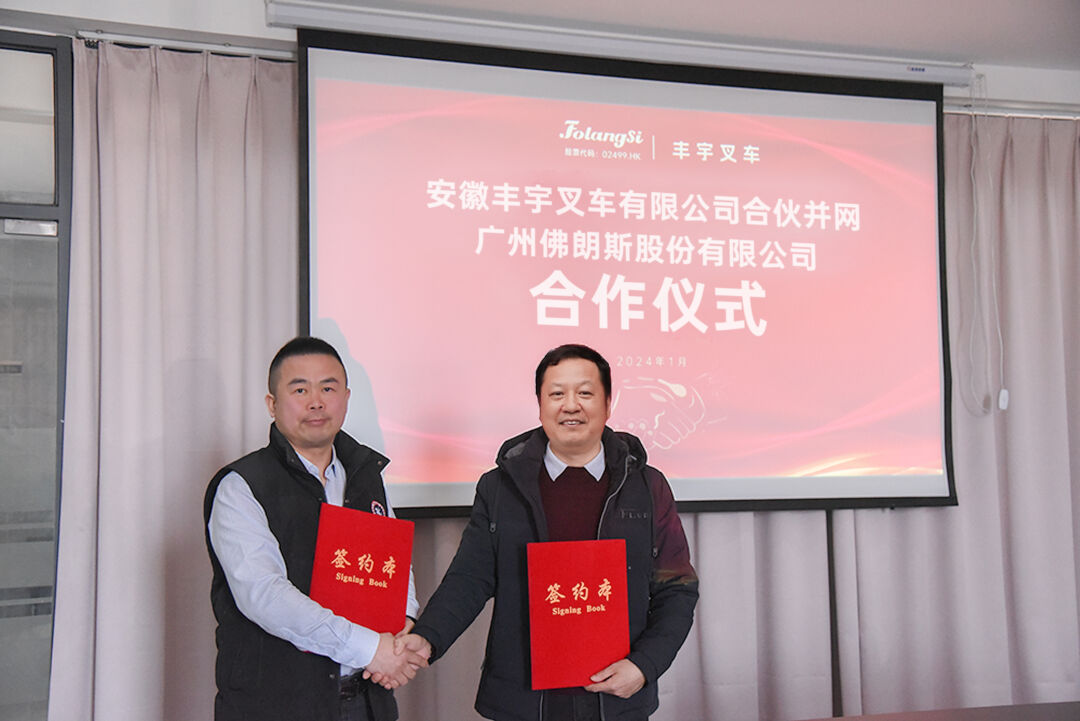 2024年1月23日,安徽丰宇叉车有限公司合伙并网广州佛朗斯股份有限公司合作仪式在合肥隆重举行。佛朗斯股份董事长侯泽宽先生与丰宇叉车总经理许昊先生共同签署了合作协议。双方牵手合作后,许昊先生将担任佛朗斯合肥乃至华东地区的大客户业务开发工作。