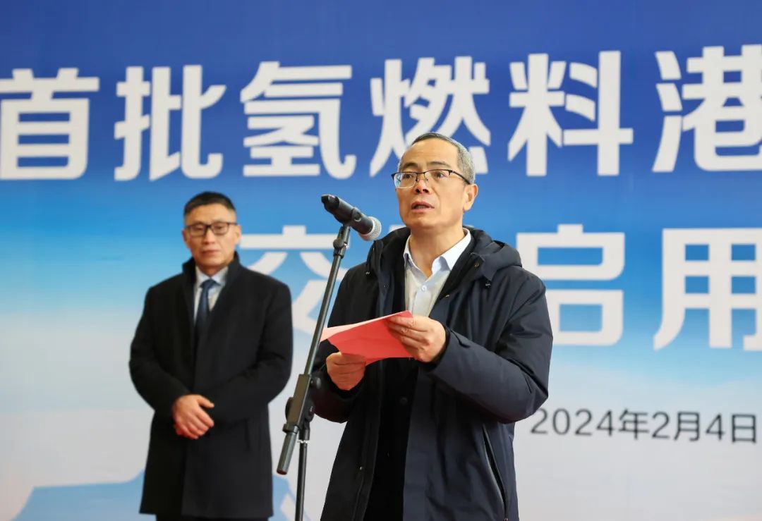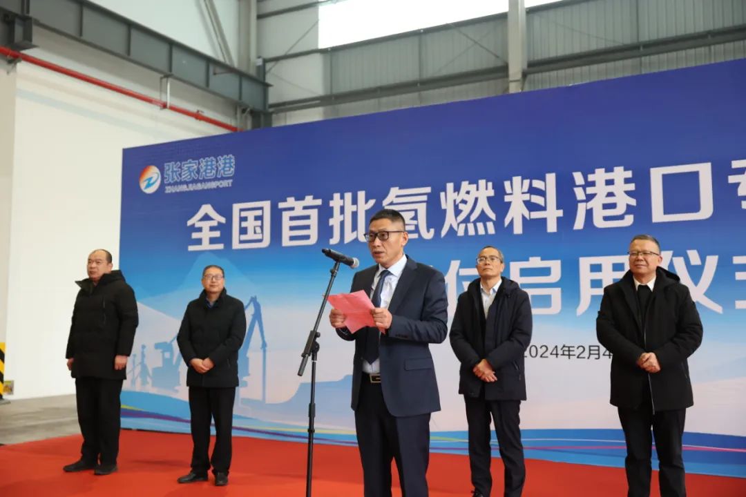 华昌化工张总在致辞中表示,首批氢燃料牵引车的交付启用是内河港口码头物流运输向低碳迈进的坚实一步,标志张家港市作为氢能行业排头兵在氢能装备应用领域实现又一重大创新突破。他表示,华昌化工将与港务集团在煤炭业务、肥料进出口、氢能动力、绿色共建、信息化共享等方面持续深化战略合作,为张家港市地方经济发展做出更大贡献。