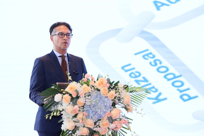 石井总经理首先欢迎了来自全球各地的丰田集团来宾和全体经销商共聚美丽的海滨城市北海。2023年是丰田叉车值得纪念的一年,我们与经销商齐心协力,推进了多项20周年的纪念活动。其中20周年纪念车型广受好评。在此对所有经销商的辛勤工作表示感谢。2024年我们继续向着丰田目标迈进。通过面向客户的一站式供给,成为用户值得信赖的整体解决方案供应商。