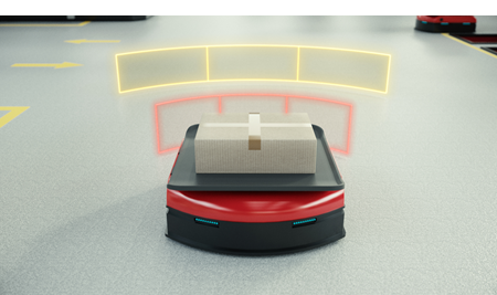 Kendrion 的安全环境最适合通过激光扫描仪监控工作区域。AGV 的位置和速度受到永久监控。当物体进入AGV环境时,其速度可以安全地降低和再次增加,并且在必要时可以触发紧急停止。大型安全过程映像(FSoE 框架)可为具有 STO、SS1、SLS 等安全功能的驱动控制器提供最佳支持。因此,我们的安全解决方案为 AGV 的最大生产力做出了决定性的贡献。