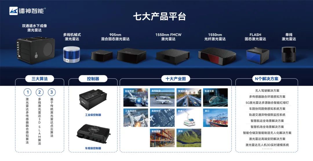 镭神智能同时掌握了TOF时间飞行法、相位法、三角法和调频连续波等四种测量原理,打造了齐全的激光雷达产品矩阵,包括1550nm光纤激光雷达、905nm混合固态激光雷达、多线机械式激光雷达、单线机械式激光雷达、Flash激光雷达、FMCW激光雷达并深度集成垂直产业链资源,自研自产激光雷达收发集成电路芯片、1550nm光纤激光器及十多种高功率核心器件等关键核心器件,并掌握半导体封装工艺,建立了激光雷达自动化及半自动化产线,彻底攻克我国被“卡脖子”的35项关键技术之一的激光雷达技术问题,并获《人民日报》报道。