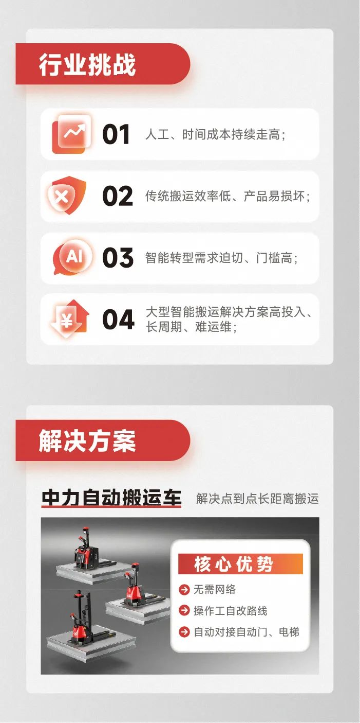 基于对市场的深度洞察,去年以来中力定义行业新概念——自动搬运车,专注解决点到点长距离无效搬运,破解用工难题。基于精准高效的自动配送,中力自动搬运车助力生产效率大幅提升!