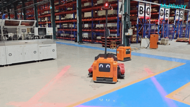 项目涉及从出入库接驳到货架存储再到上下线接驳,以往皆由人工进行跨楼层搬运,不仅费时费力,物料也难以追溯。在导入劢微机器人场内智能物流解决方案后,多车高效协同,搬运效率提升。