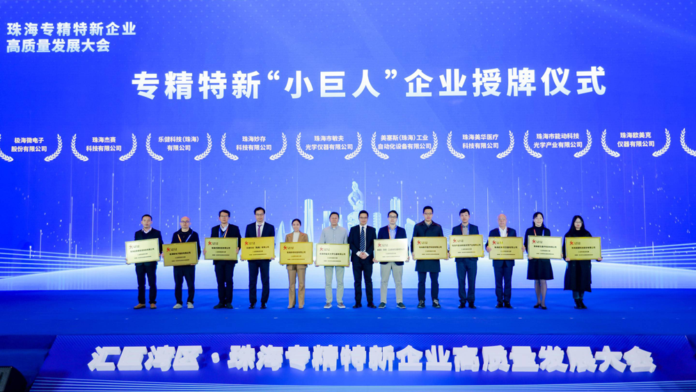 2024年2月28日 珠海专精特新企业高质量发展大会以“扶持‘小巨人’、发展大产业”为主题,在珠海国际会展中心举办,并对34家新认证的国家级专精特新“小巨人”企业代表进行集中授牌。