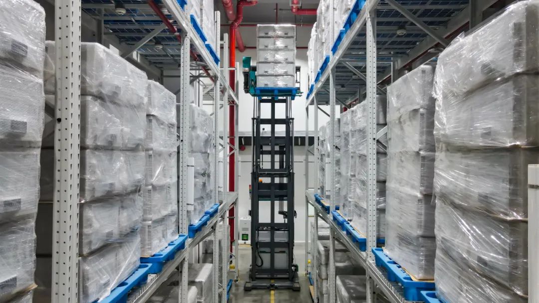 两台人下行三向AGV叉车的投入,可替代人工进行对接生产系统、成品输送入库、运输堆垛、空托盘回收等耗时费力的高重复性工作,从而削减一线人力需求,为企业实现降本增效。