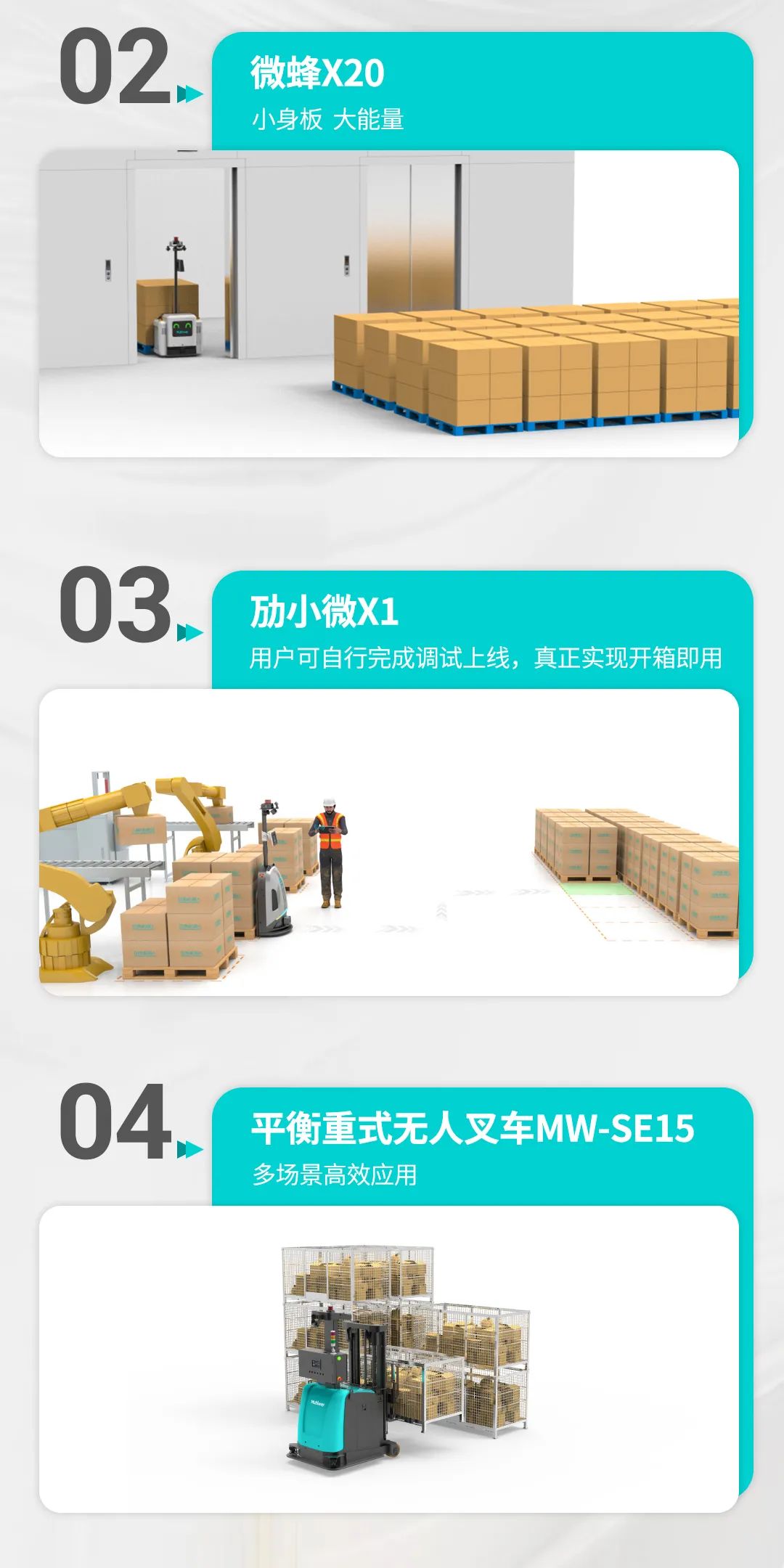 劢微机器人在工厂、仓储、物流等行业, 可提供智能、成熟、高效的搬运机器人及完整 解决方案,同时对无自主研发能力的公司提供标准方案授权,支持所有类型的AGV。