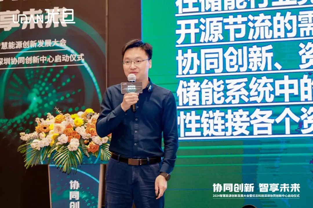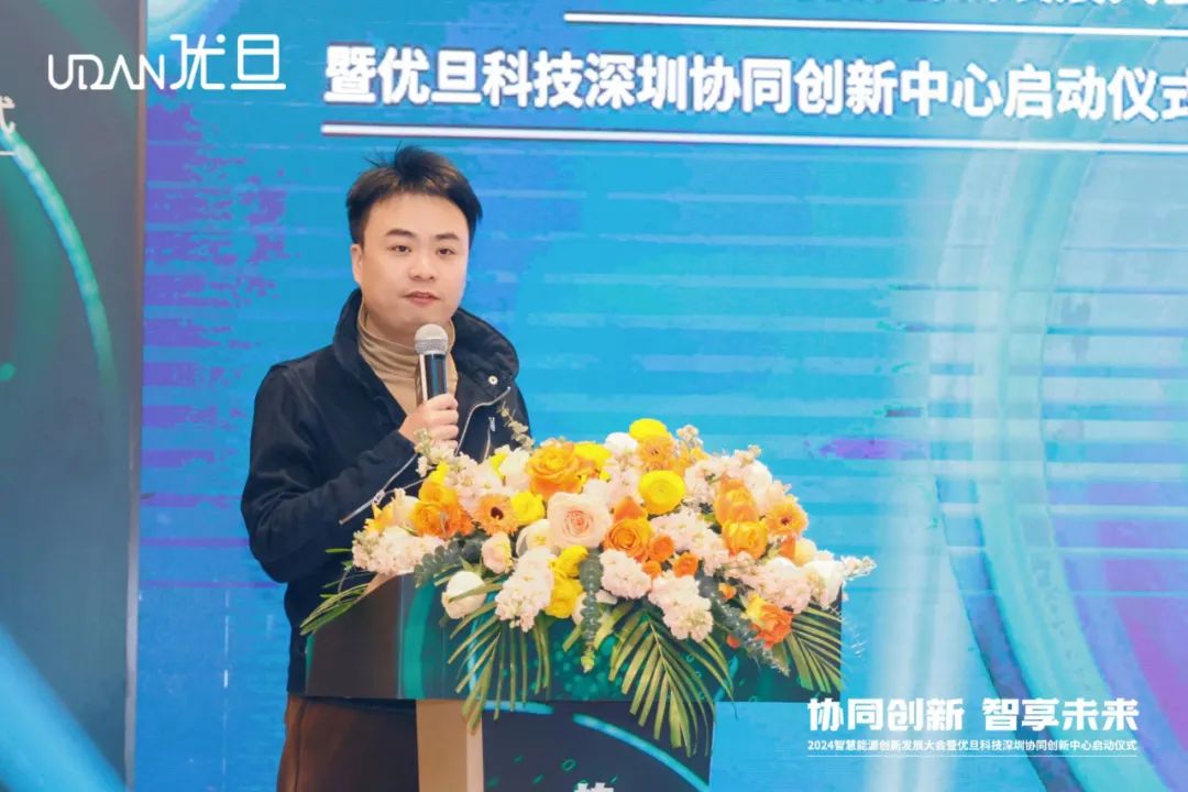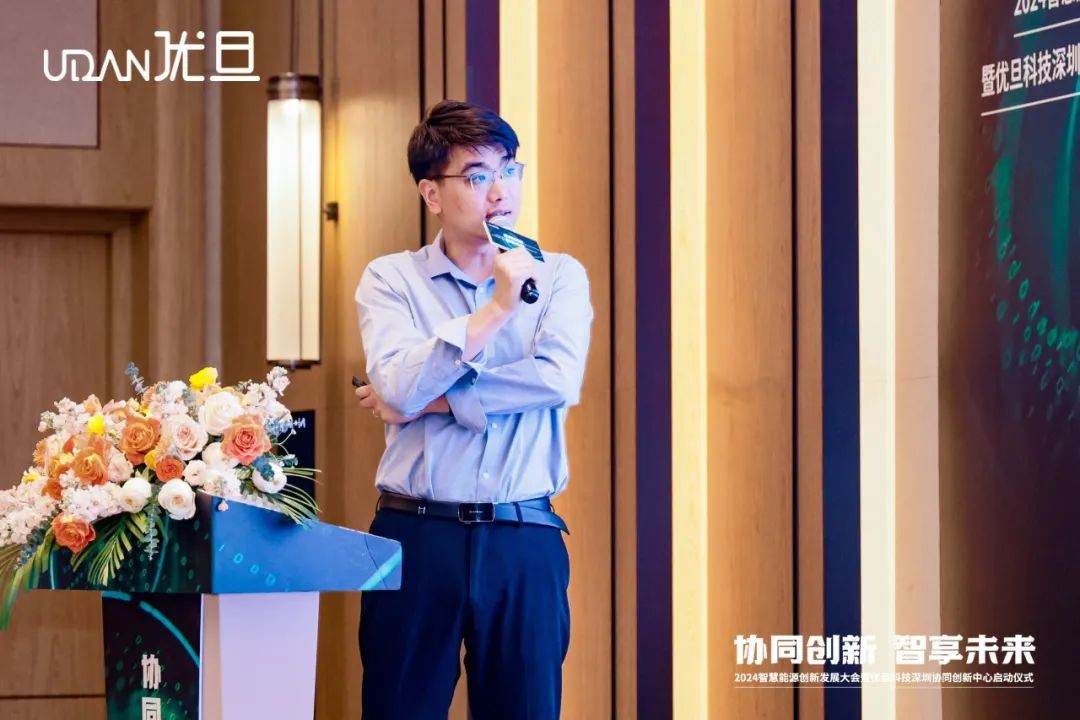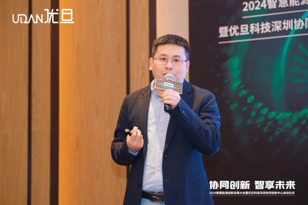 随后,优旦科技联合创始人、副总经理习清平深入剖析了工商业储能行业的发展机遇与挑战,并详细介绍了优旦科技智慧管理解决方案,展示了优旦科技在这一领域的专业实力和技术优势。优旦科技EMS产品总监高正鹏则探讨了大数据、云计算、人工智能技术在智慧能源管理中的应用探索,为与会嘉宾带来最前沿的技术视角。优旦科技深圳分公司总经理刘泉发表了以协同创新为核心的合作理念,强调了产业上下游资源共享、深度协同在推动行业未来发展中的重要意义。优旦科技创始人兼总经理彭勇俊则以“讲述另一个优旦”为主题,分享了公司的经营理念和发展愿景,展现了优旦科技不断追求卓越的企业精神。