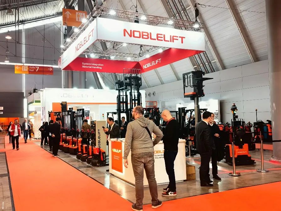 在诺力展位现场,来自全球的客户络绎不绝,人气爆棚,场面热闹非凡。