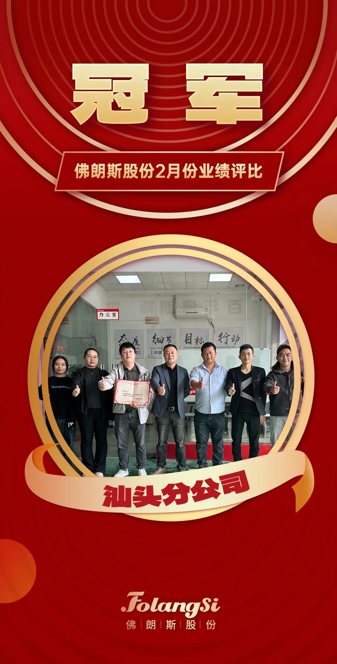 春天的脚步悄然而至,大地换上了新装,万物复苏,生机勃勃。在这充满希望的季节里,佛朗斯股份汕头分公司犹如一棵新生的绿芽,在春天的阳光下迅速成长,终于以惊人的业绩和卓越的表现,荣获了2024年2月份业绩评比冠军的殊荣,喜获开年首捷。