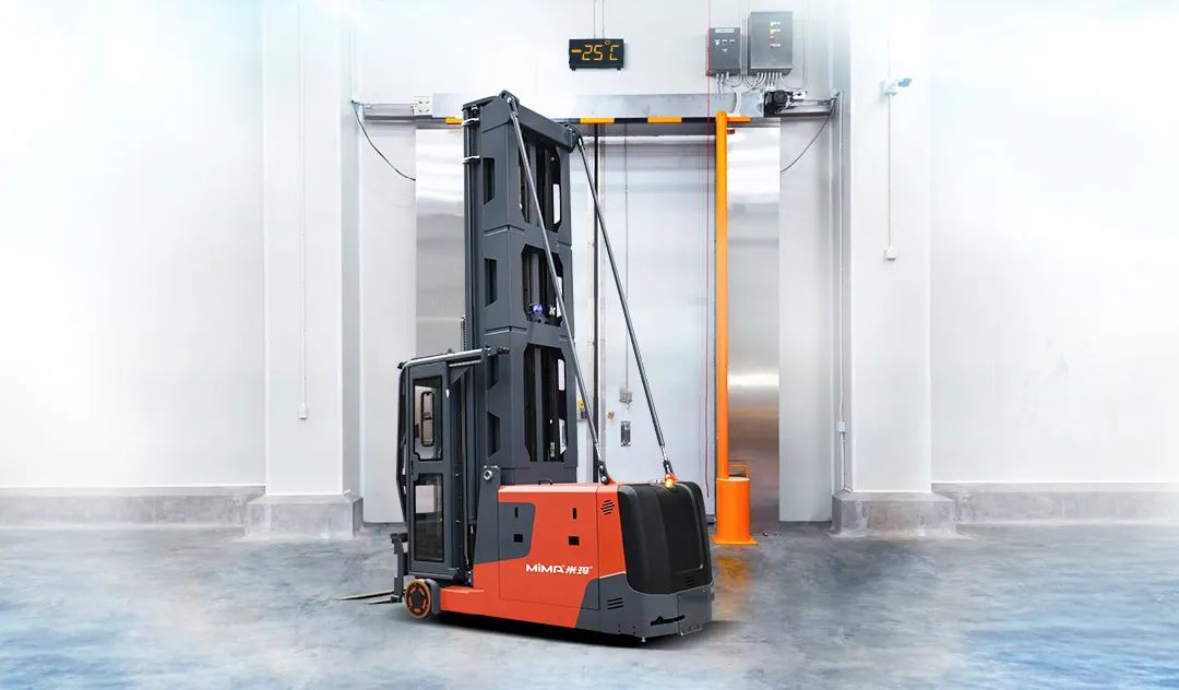 1、MiMA三向堆垛车MCC14F80额定载荷1.4吨,超高起升高度至14200mm,适用温度-25℃以上;
