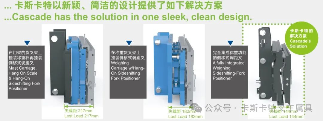 在移动称重领域,有一种新型属具可以承担一切任务——卡斯卡特ActivWeighTM。ActivWeighTM可以作为整体式或挂装式属具使用,其专利设计集称重、侧移和调距功能于一身。