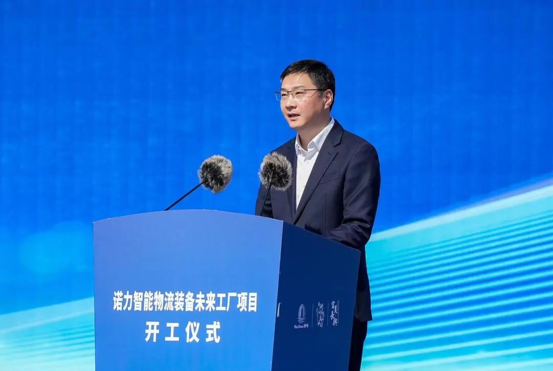 诺力集团董事长丁毅在仪式上致辞,他表示,诺力作为扎根长兴的本土企业,怀藏着深切的家乡情怀。此次五期未来工厂投建在长兴,不单是一次战略布局,更是对故土的扎根与反哺。未来工厂的顺利建设不仅将满足市场对诺力高品质、高效率物流装备的需求,同时也将为行业的持续发展注入新的活力,为本地智能装备产业升级、打造更具竞争力的区域品牌开辟新的篇章。他希望,各项目建设单位抢抓黄金施工期,在确保施工安全、工程质量的前提下,争分夺秒加快工程进度,争取项目早竣工、早投产、早达效,为建设富美长兴贡献诺力力量!