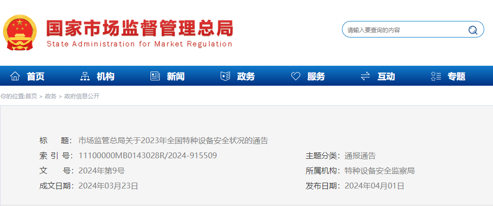 2023年,全系统认真落实党中央、国务院决策部署和总局党组工作要求,深刻把握“讲政治、强监管、促发展、保安全”工作总思路,全力守好特种设备安全底线,为高质量发展持续营造良好安全环境。