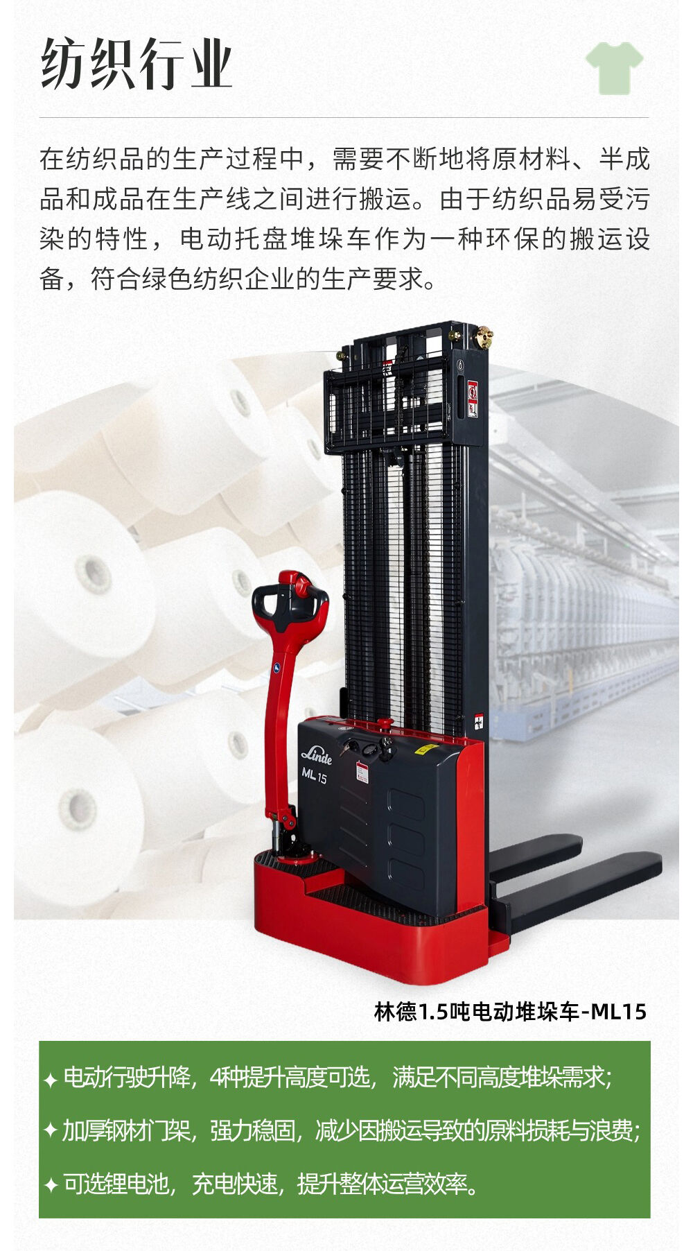 林德物料搬运系凯傲集团成员,世界叉车和仓储车制造商,也是内部物流解决方案供应商,在欧洲叉车市场占有重要的份额。