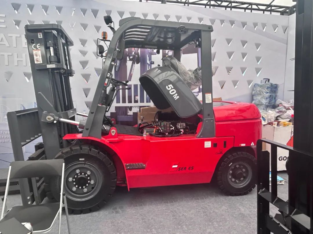 E系列5吨中压锂电叉车采用部件高度集成设计,简化线路布局,减少维护难度,故障率降至最低,能够确保作业连续性。车规级控制器和永磁同步电机,防护等级均达IP67,标配电机电控水冷系统,配合大速比变速箱,性能超越同吨位内燃叉车。