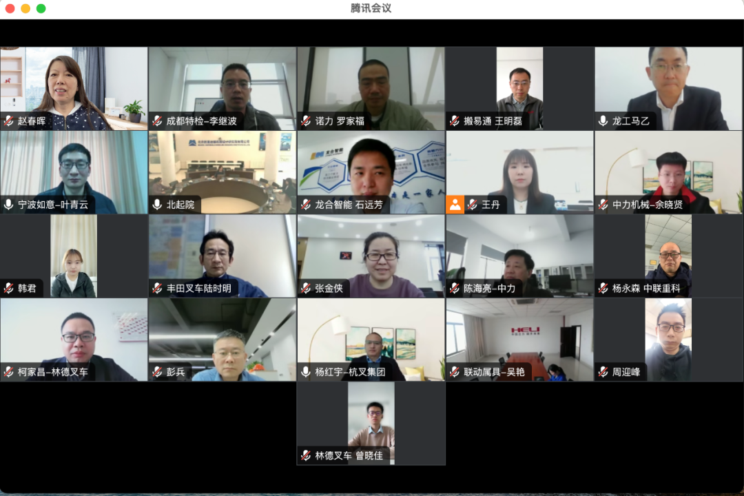 2024年4月11日,全国工业车辆标准化技术委员会(以下简称“工业车辆标委会”)以视频会议形式组织召开了行业标准《叉车属具侧移器》和《叉车属具前移式叉架》(初稿)讨论会。参加会议的有标准起草工作组成员及工业车辆标委会秘书处人员共16个单位20名代表。