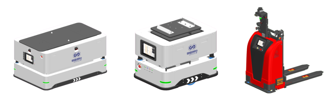 定制化车体:差速式AMR8台、双舵轮式AMR2台、紧凑型堆垛叉车2台、充电桩4台;