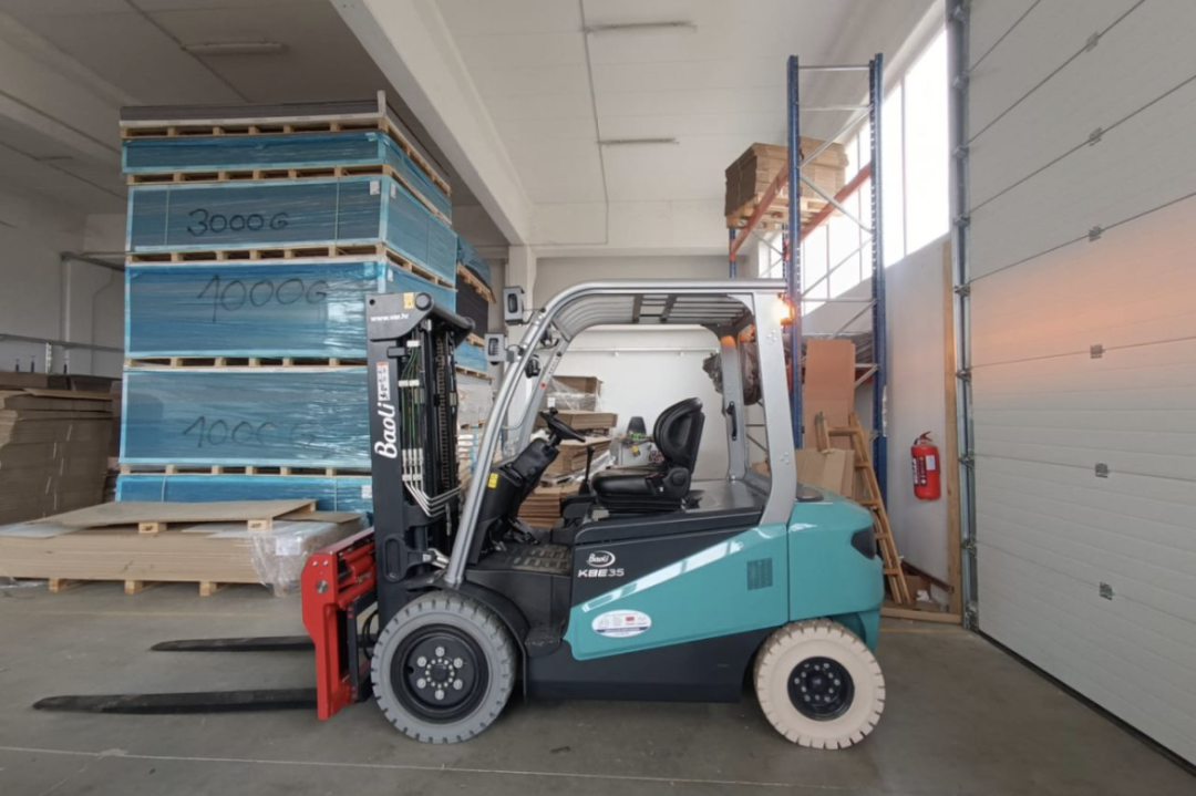 宝骊EMEA经销商新向科普里夫尼察客户交付的宝骊KBE35 G1电动叉车,配置4.65m三级门架、无痕轮胎和侧移器,整车稳定性和操作便捷性得到客户的高度肯定。