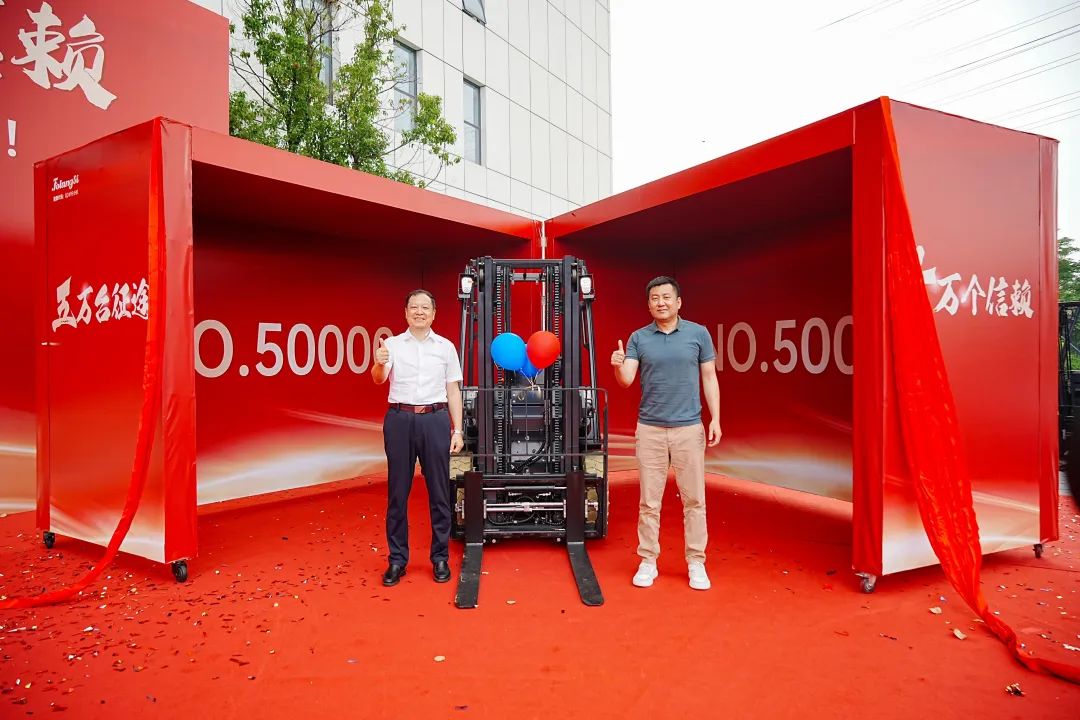 随后,庆典仪式迎来了最为激动人心的时刻—佛朗斯股份在管车队规模破5万台揭幕仪式。在董事长和总经理的共同揭幕下,崭新的第5万台叉车缓缓展现,标志着佛朗斯正式迈出了新的步伐。这一时刻不仅是对公司过去成就的肯定,更是对未来发展的美好期许。