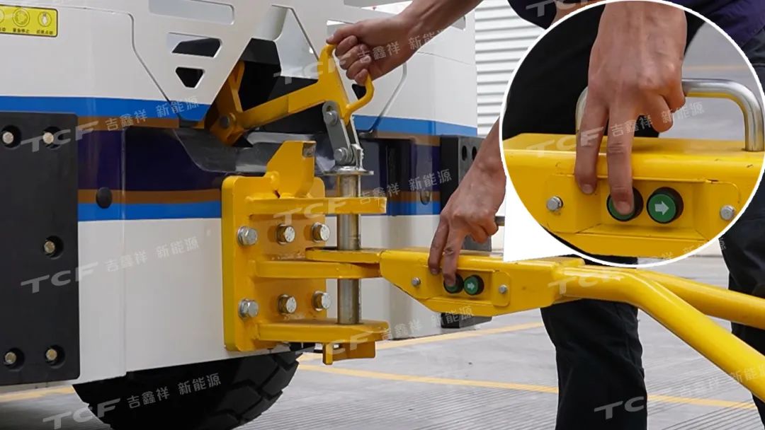 TCF电动散装货物拖车配备了智能车辆管理系统,能够远程定位车辆位置、监控运行状态等,让车辆管理更加简单明了。其具备自发电功能,能在行驶过程中为自身配备的蓄电池进行充电,实现拖车供电自给。当进行拖挂安装时,可通过点动开关控制拖车进行电动前进及后退,更加便捷省力。高强度钢板弹簧减震装置能有效吸收路面颠簸,确保货物安全。