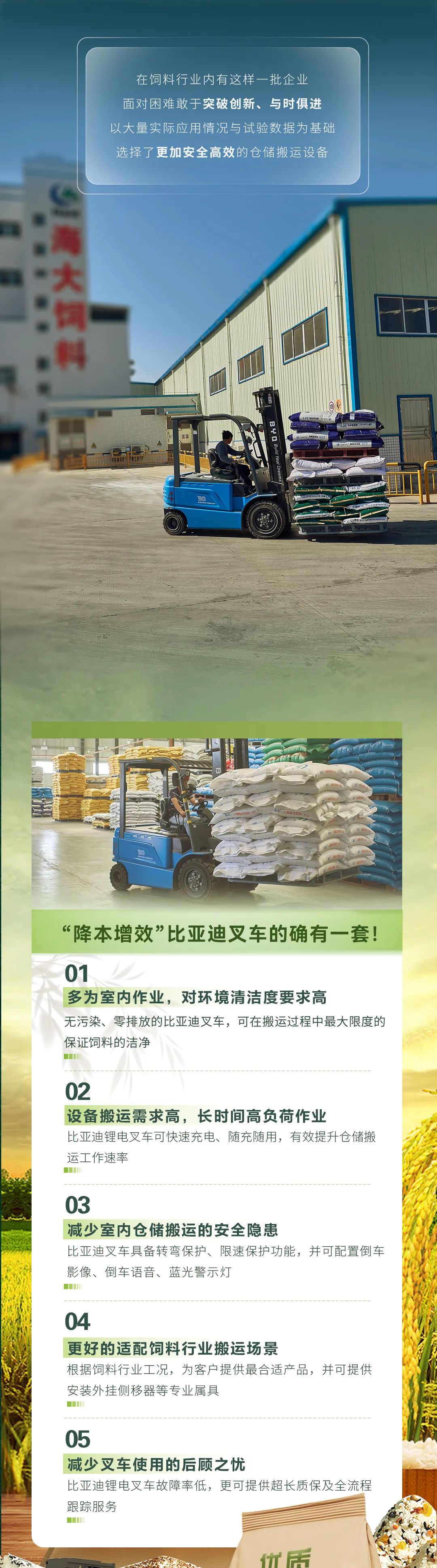 “绿养无忧”--比亚迪叉车助力饲料行业“降本增效”!