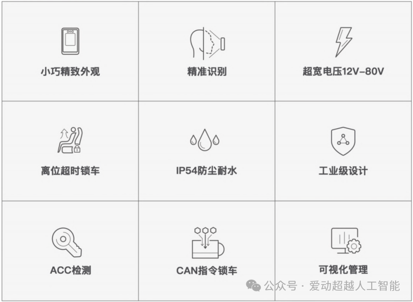 响应TSG 81政策,集成高精度人脸识别算法,采集驾驶员信息、座椅状态并通过刷脸实现开车和锁车。同时,智感产品可适用于不同的光线环境,采用双目高清摄像头,支持CAN指令锁车(需进行CAN协议适配),满足客户在使用过程中的多种需求。