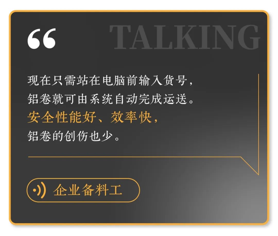 物流系统管控下,铝箔经库前自动扫码、绑定、运输等流程,实现自动出入库流转。