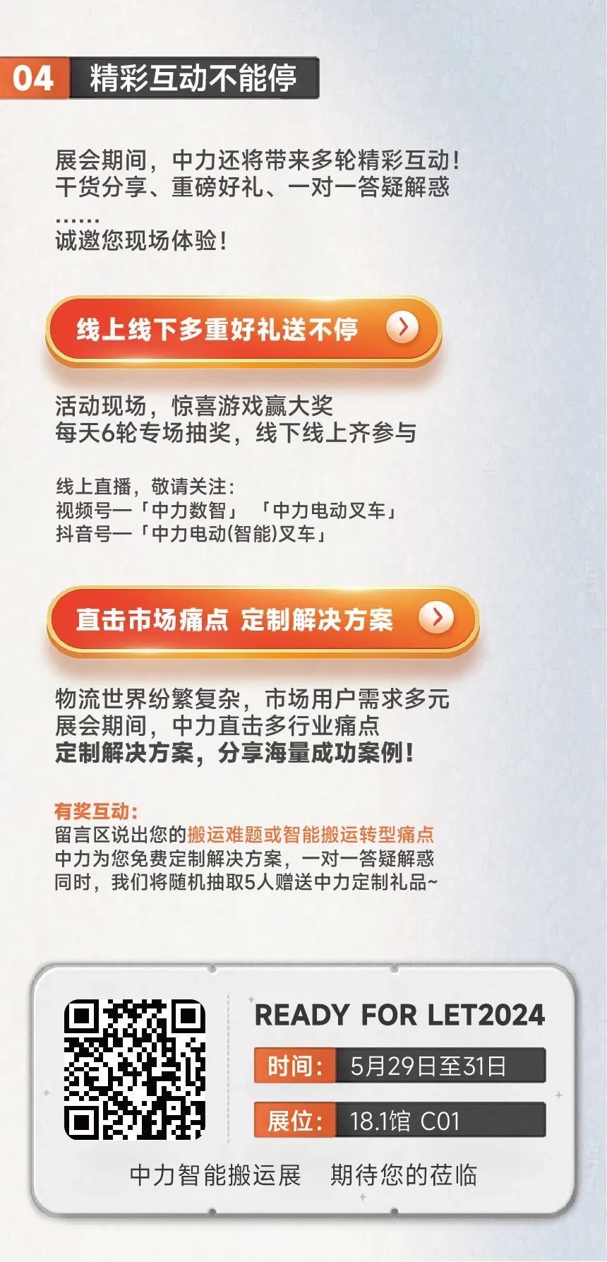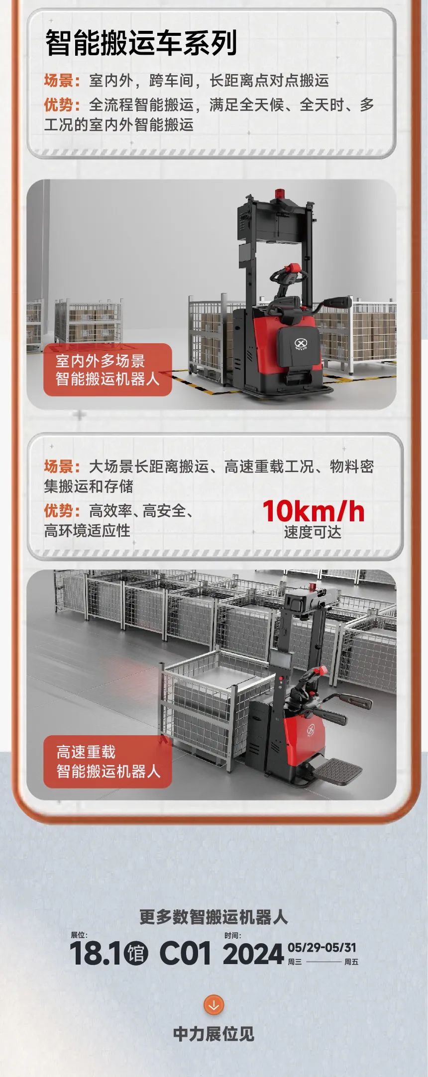 中力将继续坚持“让搬运更简单、更绿色”的初心,坚守做一家受全球尊重的企业使命,在实现从手动搬运到电动搬运的基础上,正全力推动从柴油叉车到锂电叉车的绿色革命,基于“搬马机器人”为主体,创造性推出五大智能搬运新模式,打造4.0时代下的工业物流4.0,努力实现绿色搬运、智能搬运和数字搬运。