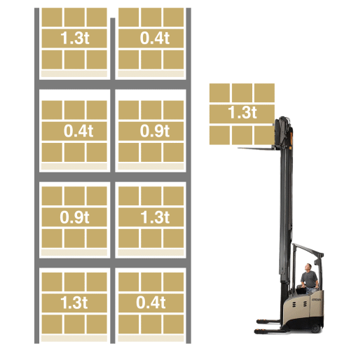 RMD叉车在任何高度的承载力都额外增加450kg。将更重的货物提升至更高的高度,意味着RMD拥有更高的剩余承载能力,提高货物堆放的灵活性以及存储量。