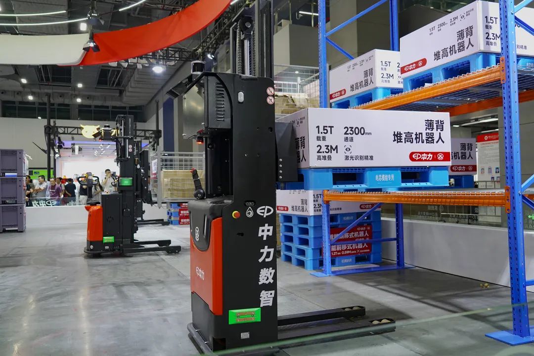 中力数智展位现场可见,2台智能堆高机器人正分别有序自动堆垛、存取。超高的智能化作业水准吸引来自天南海北的友人共聚展台,点赞称呼之声不绝于耳。
