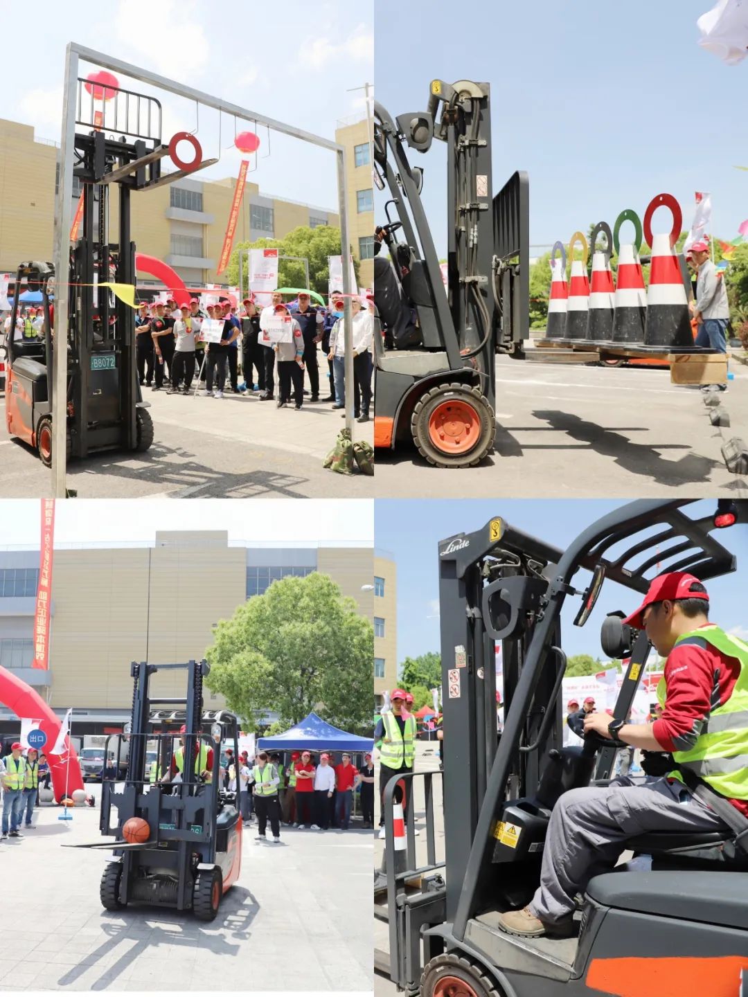 伴随着激昂的音乐和热烈的掌声,比赛正式拉开帷幕。选手们依次登场,驾驶着林德新能源电车叉车,在规定的赛道上进行一系列高难度操作。他们灵活运用方向盘,精准控制货叉,稳健而迅速地完成每一个任务。每一次成功的操作都赢得了观众们的阵阵喝彩,现场气氛热烈非凡。