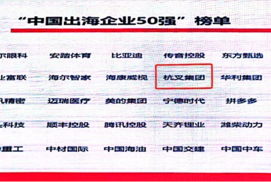 会上,财联社与中国产业海外发展协会联合评选出“中国出海企业50强”榜单,杭叉集团因在企业出海、市场影响力以及创新实力方面的杰出表现成功入选!