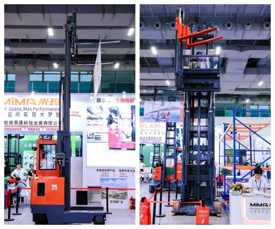 本次展会,合肥搬易通(MiMA米玛)携带了最新的1.6吨人上型三向叉车MCC16、站驾式三向叉车MC16、全向叉车MQC25、铰接式叉车MJ20、前移式叉车MFZ20及一系列AGV叉车本体,充分展现了其在智能物流装备领域的创新实力。