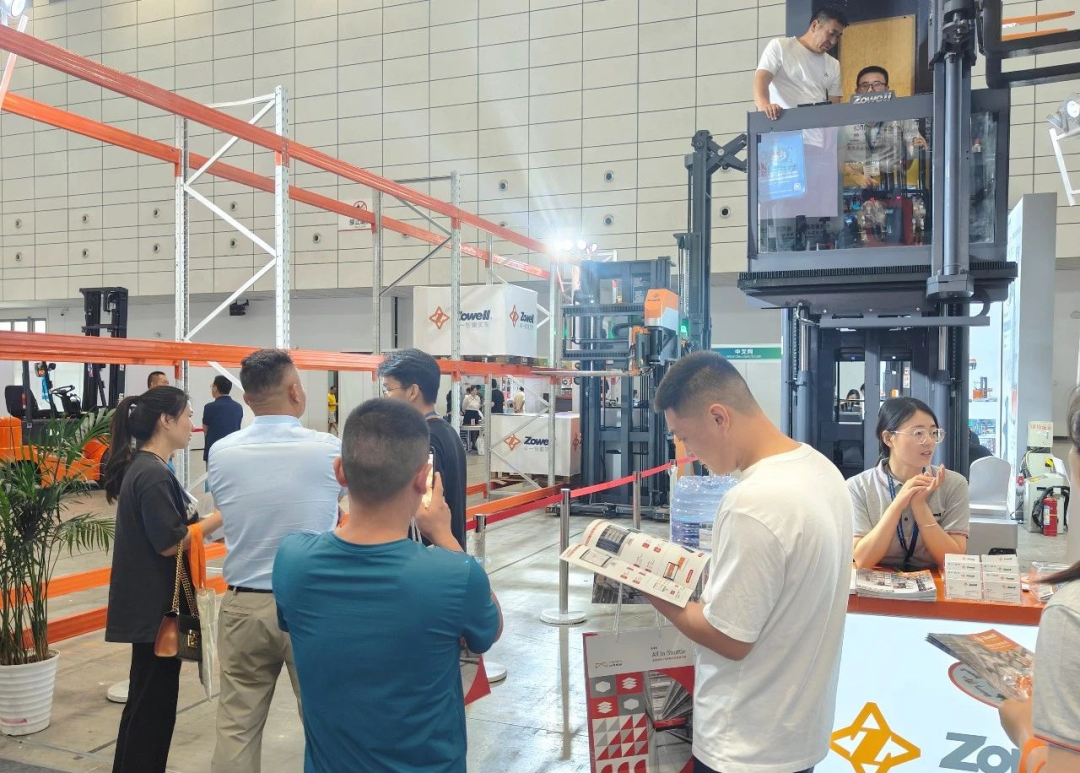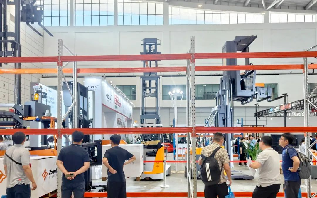 展会一开幕,卓一展台就凭借4款窄巷道系列叉车和亮眼的展台设计吸引了众多参展客户驻足参观。