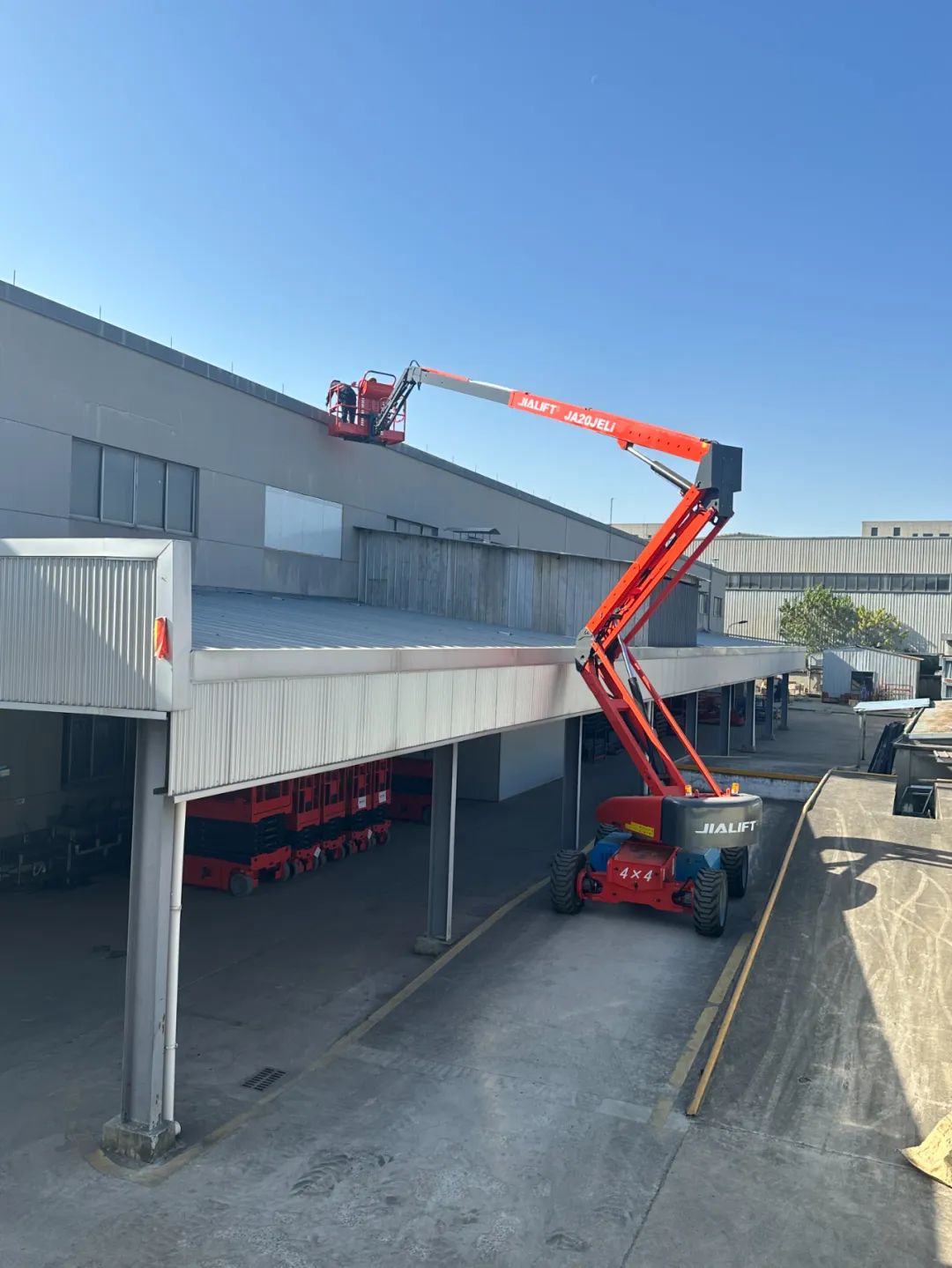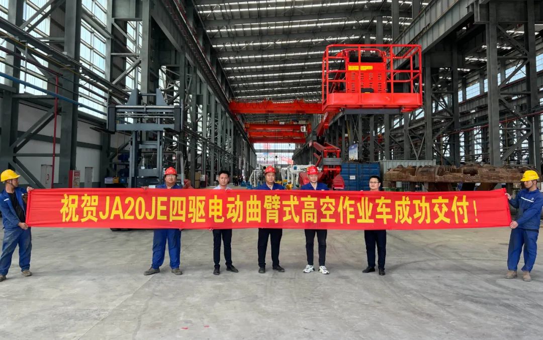 6月18日,公司生产的JA20JE四驱电动曲臂式高空作业车成功交付于某大型企业用户,该高空作业平台最大工作高度为22米,操作简单、灵活性高、安全性高、性能稳定。