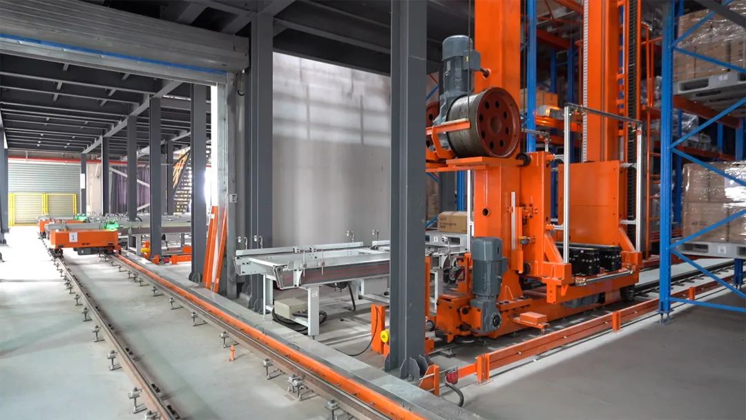 原材料库区需要为整个智能产业园的产线供给,出库量达到500托/小时。堆垛机配合一轨多车及多类型AMR机器人实现多厂区、跨楼层高效协同作业,释放线边后端物流面积,减少过道和缓存空间占用,为产线提供更加宽裕的生产环境,以便拓展设备配置。