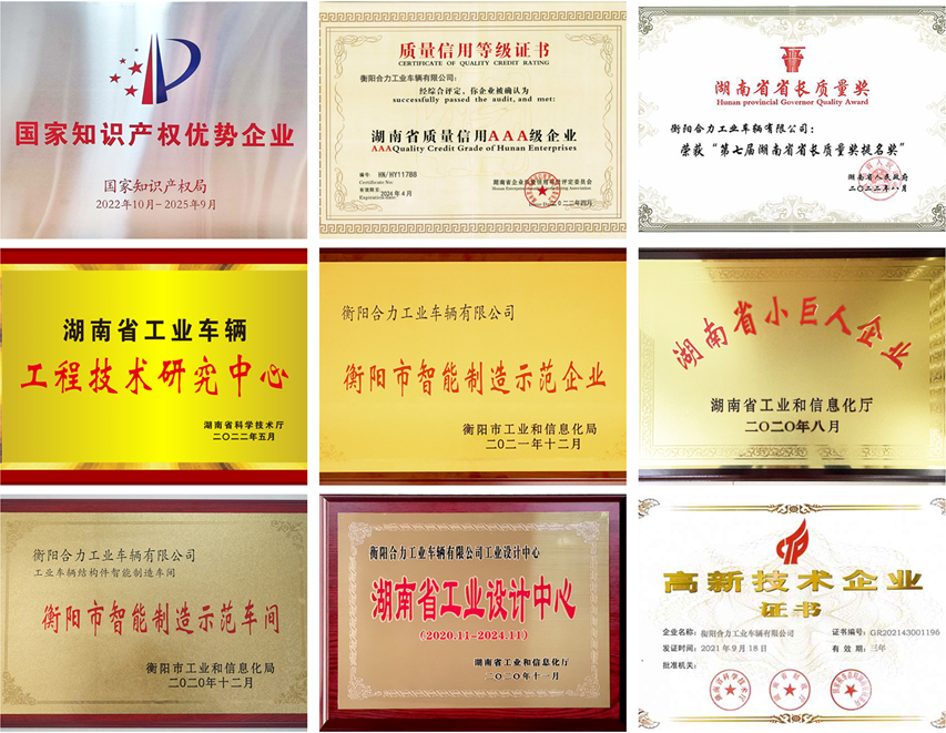 作为国家知识产权优势企业,衡阳合力拥有省级企业技术中心、省级工业设计中心、省级工业车辆工程技术研究中心,开发的系列产品全部拥有自主知识产权和防爆自主关键核心技术。主导产品囊括内燃叉车、电动叉车、防爆叉车、防爆牵引车、防爆搬运车等十大类别、200余种整车型号、80余种防爆零部件型号。3次荣获湖南省科技进步奖,3次荣获中国机械工业科学进步奖。先后参与制修订5项国家标准,现有国家专利140余项。