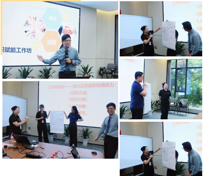 充电培训促提升,蓄力赋能共成长。会议特邀新生代管理培训师职业讲师曲直授课“人力组织赋能工作坊”, 培训共划分4个小组,并且引入了得分机制,提问、角色扮演、情景再现、研讨等等。经过3个小时的工作坊,全体成员在业务痛点识别、方向把握、重点推进等方面都更好的理解与提升。