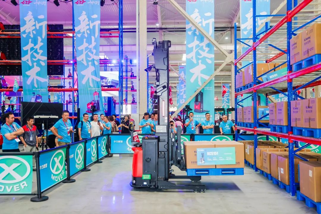 本次活动,中力创新推出超薄的1.5吨自动搬运车,整车自重仅200kg,可充分适合各种类型电梯以及各种极窄通道搬运使用,自动精准搬运,极大保障货物不受损。